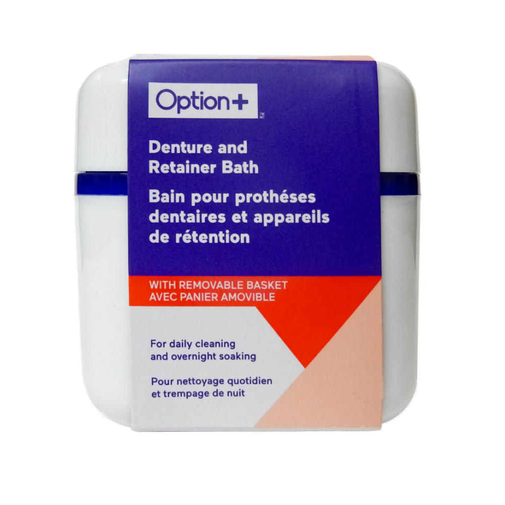 option+ Denture & Retainers Bath is a dedicated soaking container designed to support everyday hygiene for removable dental appliances. Suitable for full and partial dentures, orthodontic retainers, aligners, mouthguards, night guards, and similar oral devices, it provides a convenient place to soak, rinse, and temporarily store appliances between uses. A purpose-made bath helps reduce the risk of misplacing appliances and limits contact with household surfaces, supporting a cleaner routine at home or while travelling.